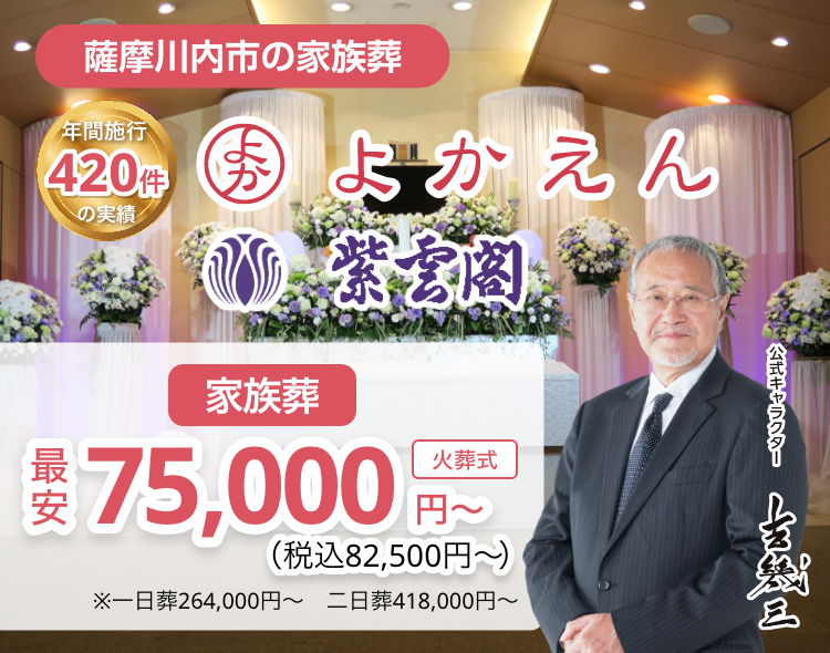地元、薩摩川内で約50年の実績ある地域密着型の葬儀社です。地域の風習も熟知しており、初めての葬儀でも安心してお任せいただけます。